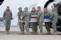 Fallen soldier laid to rest By Travis Griggs Pensacola (Fla.) News Journal NAVAL AIR STATION PENSACOLA, Fla. — Seven honor guard rifles cracked a salute in the distance. The gunshots echoed briefly before being carried away on a brisk fall wind. A bugler sounded the first notes of "Taps," sending sniffles and sobs cascading through the crowd of mourners gathered at Naval Air Station Pensacola on Nov. 29. "Honor. Duty. Country." The honor guard commander shouted those words as he clutched a sharply folded flag from the casket bearing the remains of Army Pfc. Matthew Colin, 22, of Navarre. More than 200 people crowded into a Barrancas National Cemetery pavilion where Colin received full military burial honors. His parents, Ken and Kathy Colin, sat quietly beside their son's casket during the service. Colin was killed Nov. 16 by a roadside bomb while patrolling near Kandahar, Afghanistan. A 2007 graduate of Navarre High School, Colin was assigned to the 1st Battalion, 5th Infantry Regiment, out of Fort Wainwright, Alaska. At noon, scores of vehicles accompanied Colin on his final ride from Naval Aviation Memorial Chapel to Barrancas National Cemetery. Dozens of military personnel, police and firemen stood alongside the road saluting as the funeral procession passed. A massive American flag was suspended over the cemetery entrance by fire truck booms. Other base flags flew at half-staff in the fallen soldier's honor. Family members described Colin as an athlete, an avid outdoorsman and a proud soldier, unafraid to heed his country's call. Army Maj. Gen. John Peabody presided over the funeral and presented the American flag that had draped the casket to Colin's parents. Peabody said a few words about their son's bravery and sacrifice. He presented them with their son's medals, which included a Bronze Star, a Purple Heart, a Good Conduct Medal and others. After the casket was lowered into the ground, Ken and Kathy Colin stepped away from their son's grave for a quiet moment. Arms around each other, they stared out across the rows of white grave markers, which stretched for what seemed miles across the cemetery's rolling hills. Then they turned and walked slowly away, leaving their son at his place in a field of heroes. |