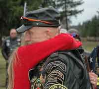 At the memorial, several dozen members of the Patriot Guard - a national group of motorcycle riders and veterans who attend military funerals - lined the entrance to the stables, carrying U.S. flags.